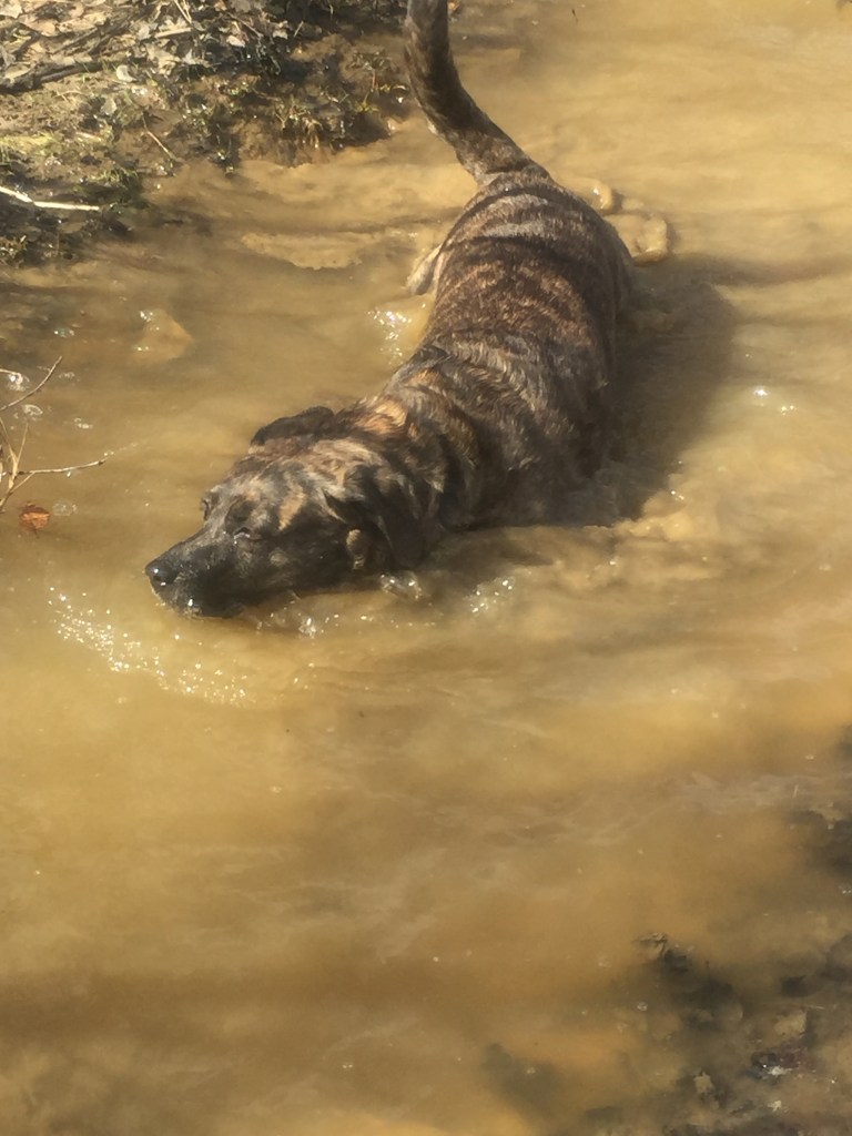 Callie’s “swimming” puddle
